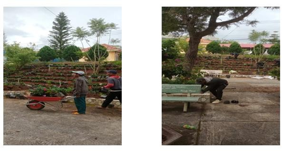 Khuôn viên tươi mới, trong lành sau khi hoàn thành các hoạt động trồng cây xanh, trồng hoa.