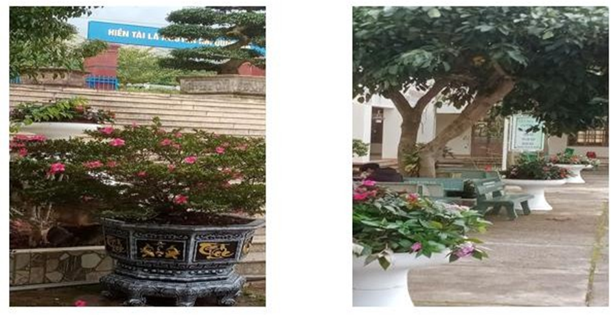Các bồn hoa được trang trí đẹp mắt, tô điểm cho cảnh quan trường học.